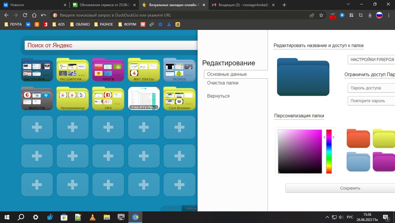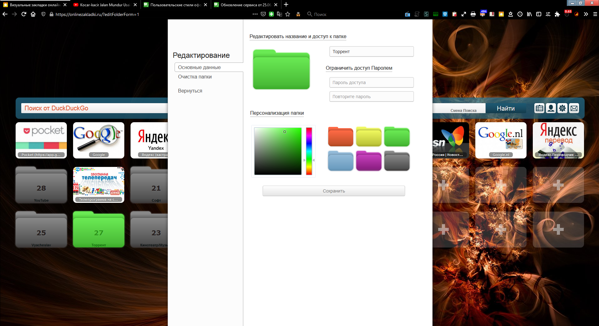 Здравствуйте! Сейчас жизнь изменилась таким образом, что нет возможности заниматься развитием сервиса, только поддержкой. По поводу вашего вопроса о папках, вам нужно установить плагин Отображение на папках иконок сайтов